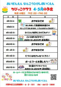 南港東保育所|ちびっこクラブ4月・5月の予定です