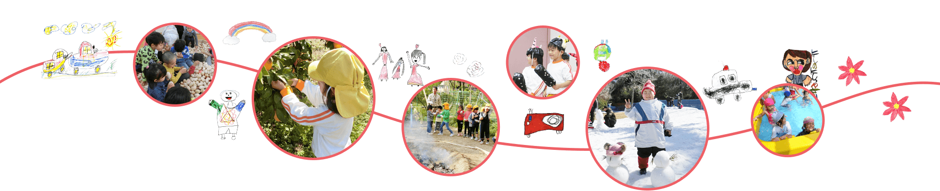 自然に恵まれたこの地域で、子どもたちは毎日思いきり戸外に出て、友だちと楽しく遊んでいます。